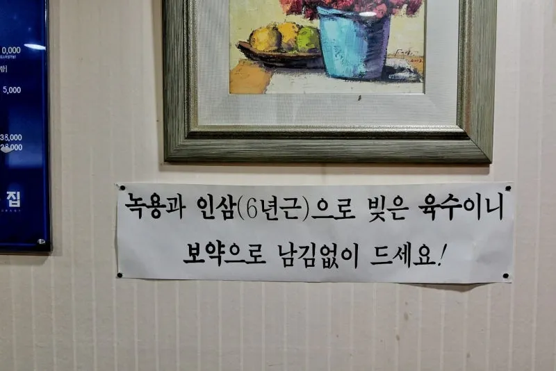 "녹용과 인삼(6년근)으로 빚은 육수이니