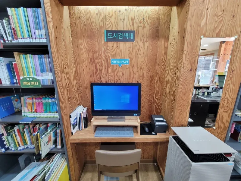 회원가입과 도서 검색을 위한 컴퓨터가 있습니다.