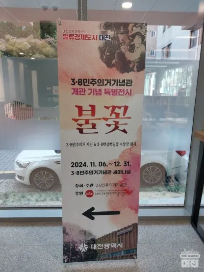 그렇게 생각을 하고 전시자료를 봐서 그럴까요? 대전고 학생들의 모습이 촬영된 사진 자료에서는 10대라고는 믿을 수 없을 정도의 강렬한 기운이 내뿜어지고 있는 것 같았습니다. 신문사의 보도자료, 당시 대전고 학생이었던 분들의 기증자료, 각종 육성기록 자료는 여태 보아왔던 역사박물관의 수준을 한 단계 더 높여놓았다고 생각됩니다. 특히 2층 상설전시관 문화해설사님의 그 당시 대전의 상황을 곁들인 설명을 들으면서 기념관을 관람해 보세요. 3·8민주의거 기념관에서 근현대 역사 드라마 한 편 본 듯한 감동을 받을 수 있을 것입니다.