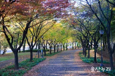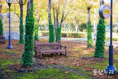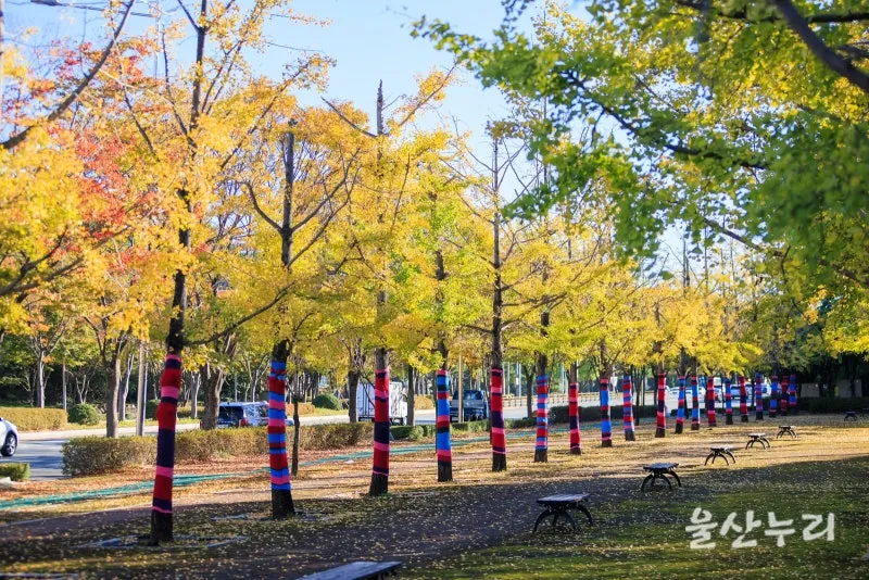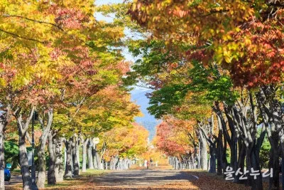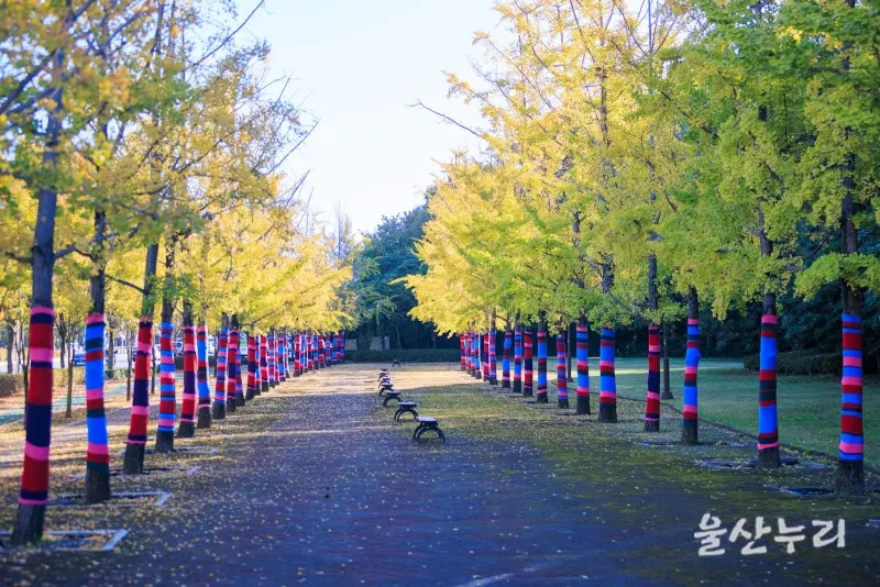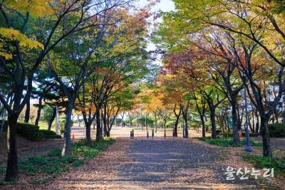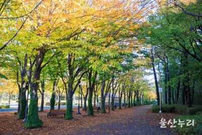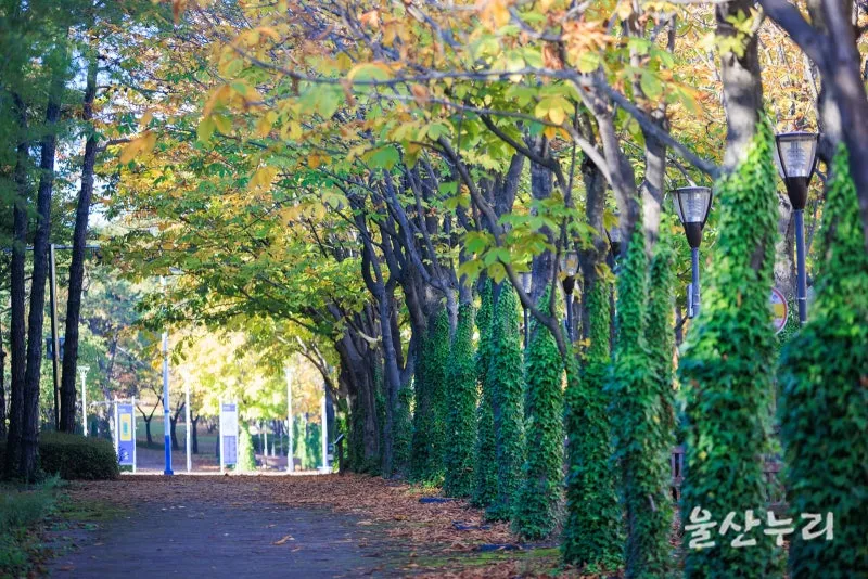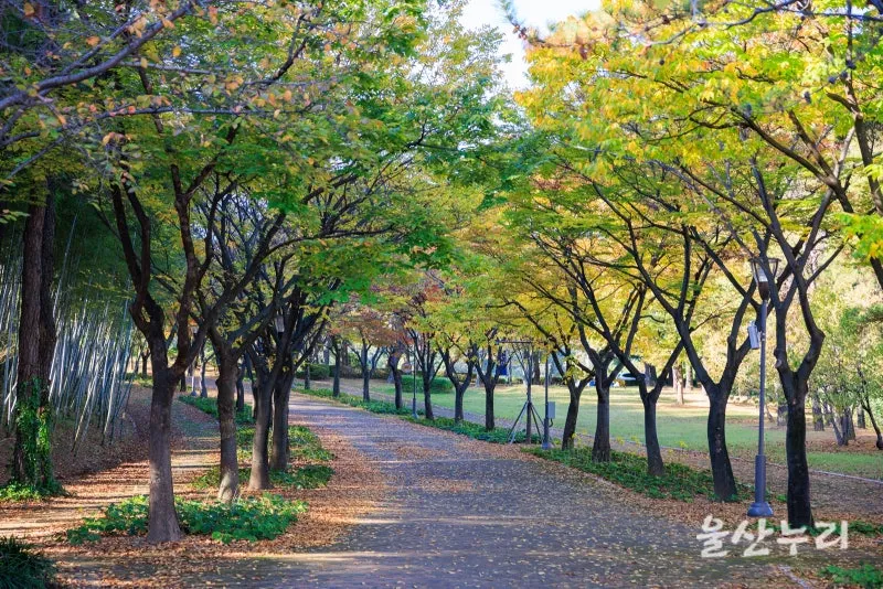 1. 느티나무길 : 울산의 대표적인 가을 단풍 포인트로 손꼽히는 곳이며, 코로나 이전에는 낙엽 축제의 장소였습니다.