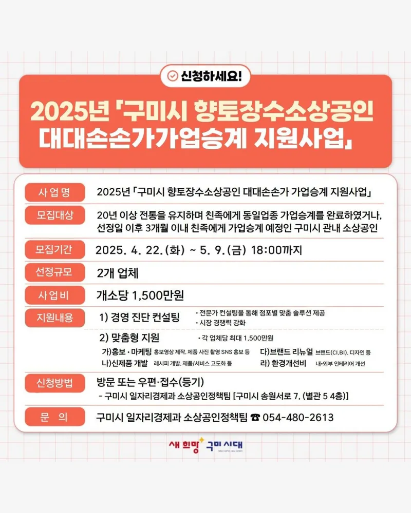 2025년「구미시 향토장수소상공인 대대손손가 가업승계 지원사업」👪💕