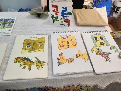 그리고 공룡을 그리면서 얼마나 행복해하는지