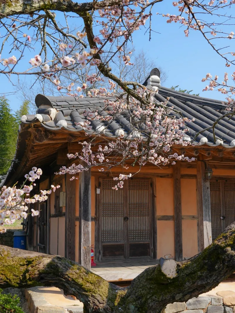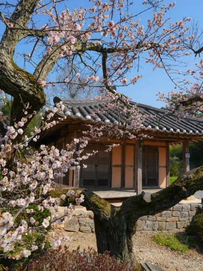 고즈넉한 한옥과 함께 피어난 매화가 어우러져
