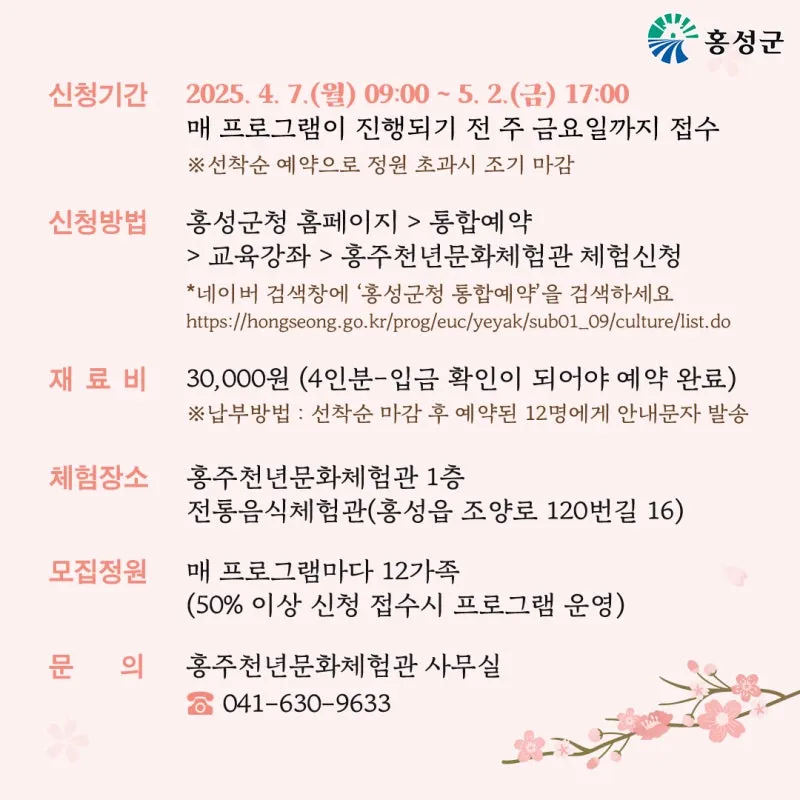 홍성군청 홈페이지 > 통합예약 > 교육강좌 > 홍주천년문화체험관 체험신청