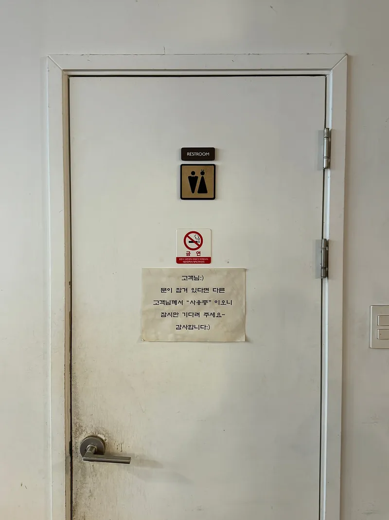 라드커피에서 좋았던 점은 화장실이 내부에 있어서 편리하게 이용할 수 있었습니다. 남녀 구분 없고, 문이 잠겨 있으면 고객님께서 사용 중이니 기다리신 후에 사용하시면 됩니다.