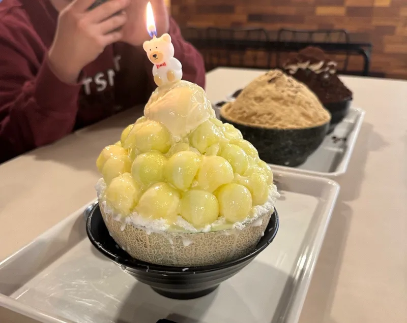 저는 단체로 방문하여 빙수 3종류를 주문했습니다. 직원분께 따로 요청하니 초도 구매할 수 있었습니다. 메론 빙수는 실제 메론에 우유 얼음과 메론, 그리고 바닐라 아이스크림까지 얹어져 있어 먹는 내내 과일의 달콤함으로 입이 즐거워질 수 있었습니다.