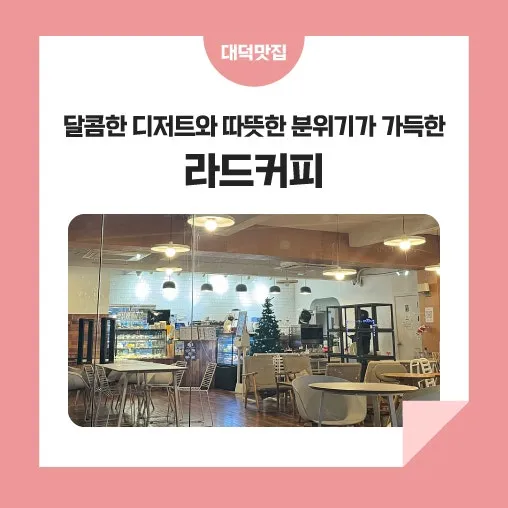 달콤한 디저트로 당 충전하기에 좋았던 중리동에 위치한 라드커피는 안락한 조명과 크리스마스트리까지 함께 있어 연말의 따뜻한 분위기를 느끼기에도 좋았습니다. 다들 연말에 라드커피에 방문해 보시길 바랍니다.