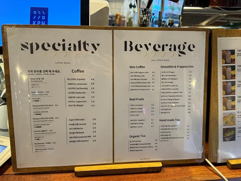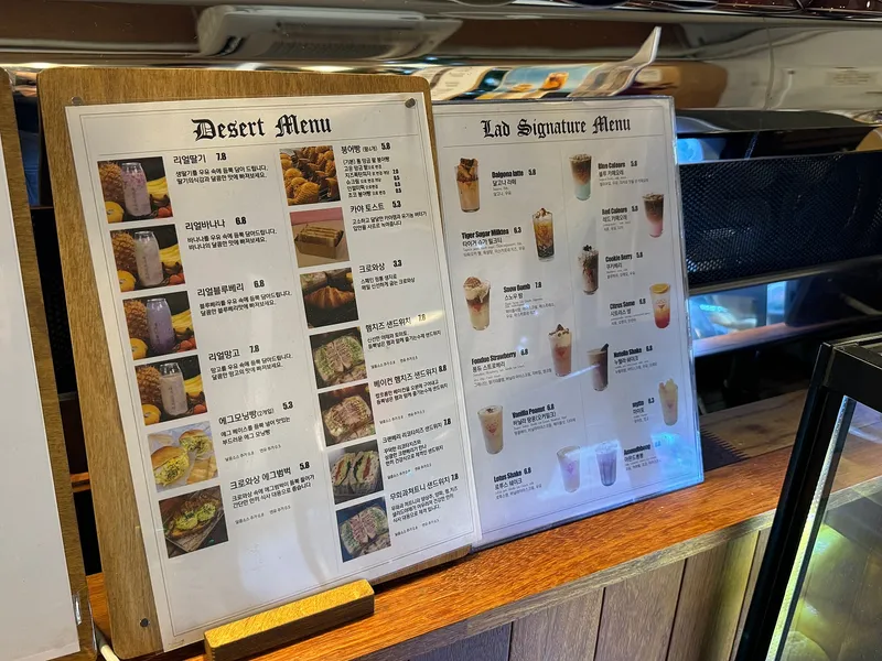 시그니처 메뉴와 디저트는 사진으로도 메뉴판 안내가 되어 있어서 선택하는 데에 있어 유용해 보였습니다. 특히나, 샌드위치 종류가 다양하게 있어 브런치로도 제격인 카페인 것 같습니다.