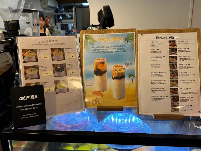 요즘 같은 계절에 개인 카페에서 빙수 파는 곳이 드문데, 라드커피에서는 컵 빙수부터 음료나 디저트에 만들 때 사용되는 생과일도 신선해 보였습니다.