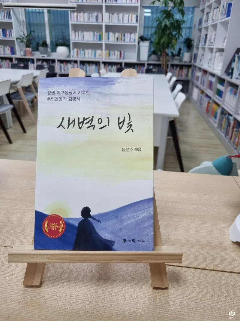 관장님께서 추천하신 책 '새벽의 빛' 입니다. 2022년 우수 출판 콘텐츠 선정작이기도 합니다. 창원 여고생이 기록한 독립운동가 김명시는 어떤 분일까요? 궁금하다면 도서관으로 오셔서 읽어보기를 추천드립니다.