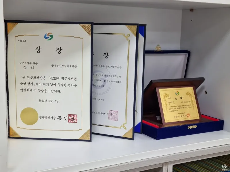 다양한 프로그램을 진행하다 보니 상장도 많이 받은 것 같습니다. 뭐니 뭐니 해도 저는 도서관 자체에서 책을 발행한다는 것에 후한 점수를 주고 싶습니다.