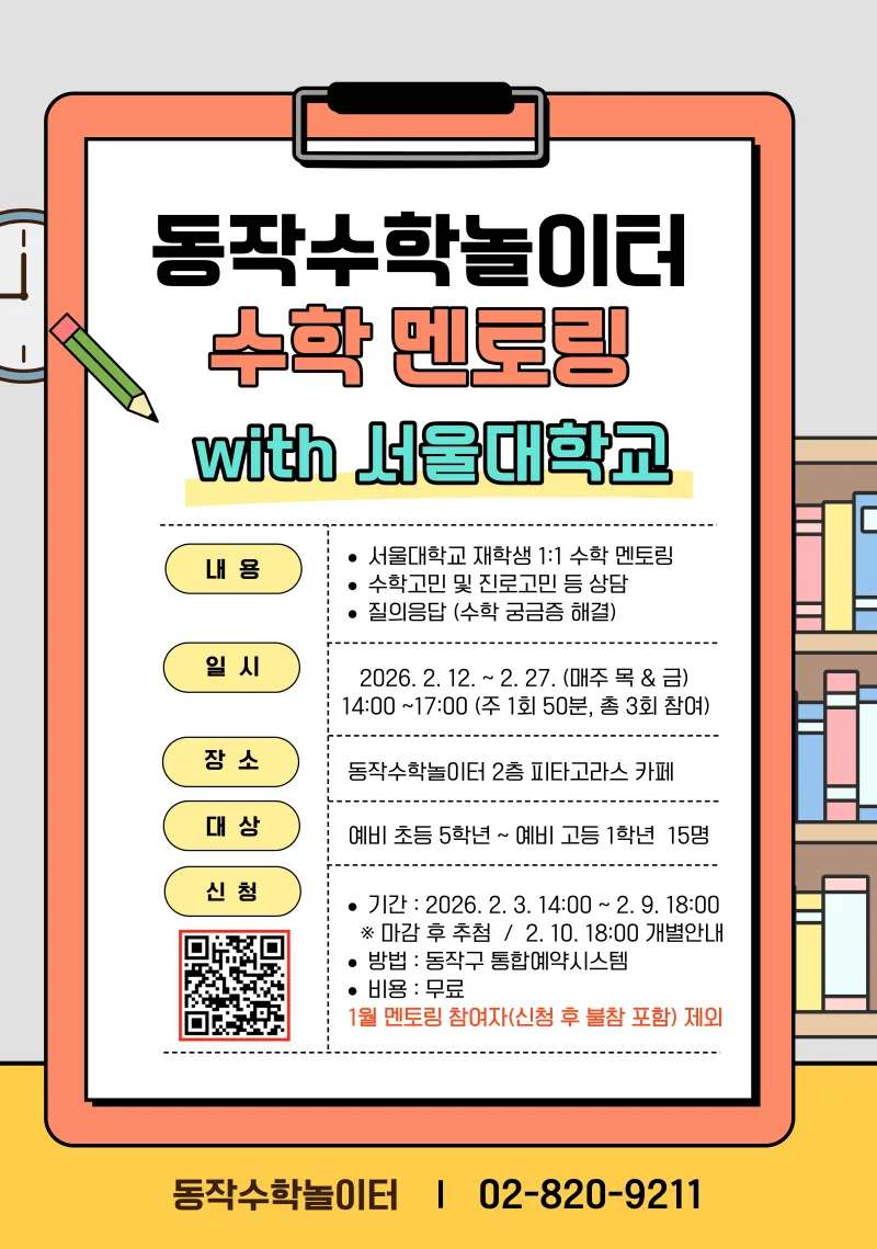 동작수학놀이터 2월 수학 멘토링 참여자 모집 안내