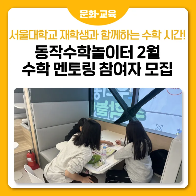 「동작수학놀이터 2월 수학 멘토링」참여자를 모집합니다.