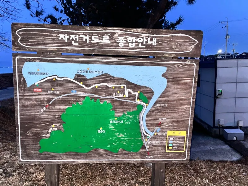 자전거를 타고 하전 갯벌체험장을 시작으로