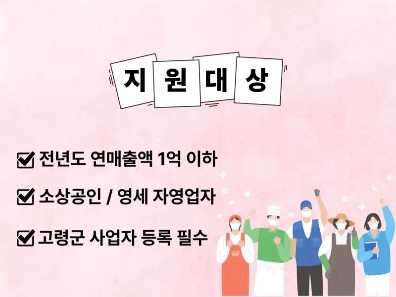 대상은 '24년도 연 매출액 1억원 이하 소상공인으로 고령군에 사업자 등록을 한 점포입니다.