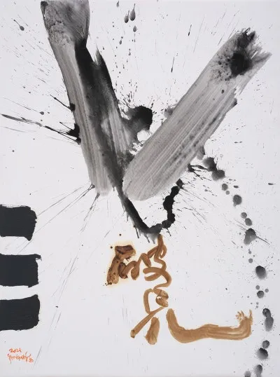 <바람의 흔적> 한천은 자신의 융합서예를 위해 보다 과격한 실험을 지속하고 있는데 현대미술을 접목한