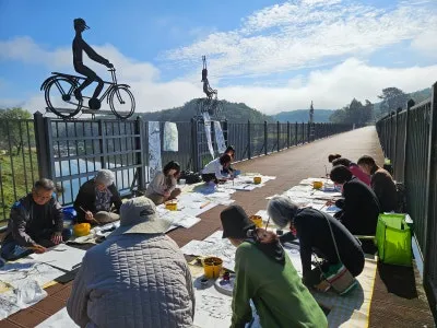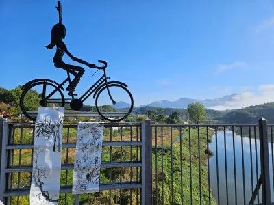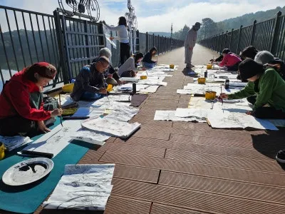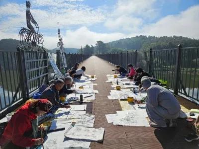 고즈넉한 다리 위에 올라서면 세속적 고뇌가 운무처럼 사라지는 듯하다. 약속이나 한 듯이 섬진강이 가장 잘 보이는 다리 위에 화선지를 펼친다.