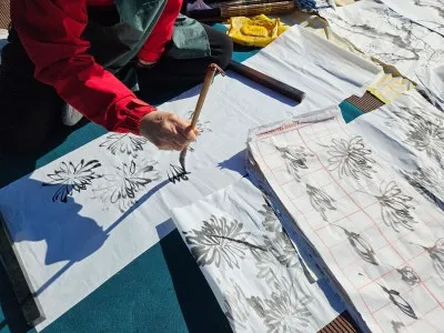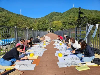 오늘은 안개 짙은 아름다운 유원지이지만 역사 속으로 사라진 향가로 붓과 먹을 들고 야외 스케치를 떠났다.