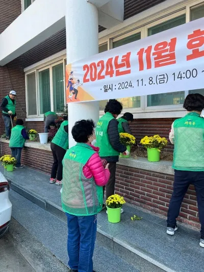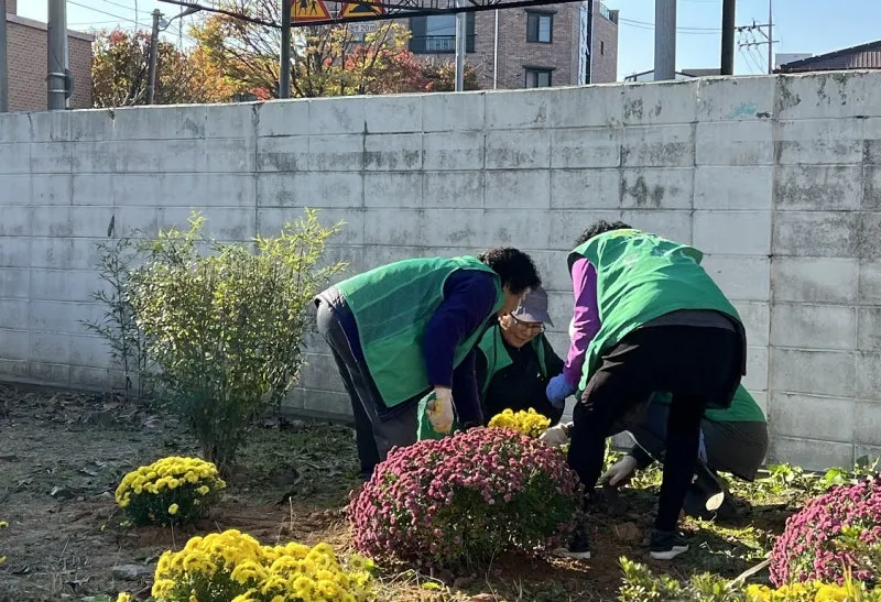 이날 새마을부녀회 회원들과 남중동 직원들은 행정복지센터 전면에 조성된 화단에 가을꽃 100여 점을 식재하고, 쓰레기 수거 등에 구슬땀을 흘렸다.