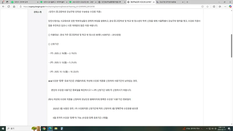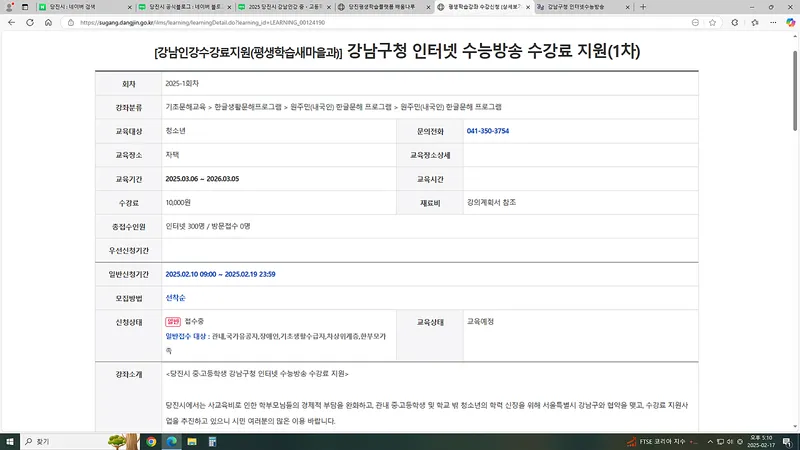 당진시 관계자는 “강남인강 수강료 지원 사업이