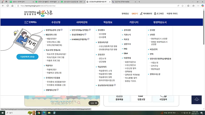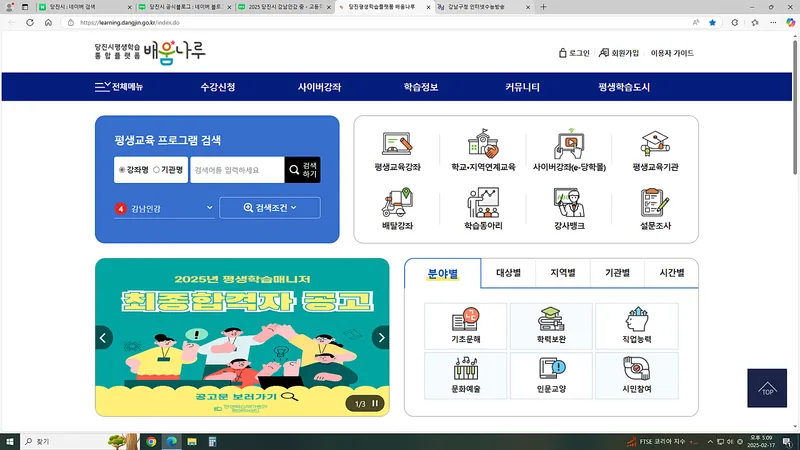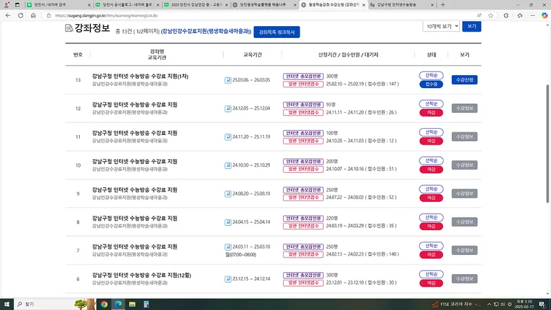 ▶ 평생학습강좌(수강신청) ▶ 강남인강 수강료지원