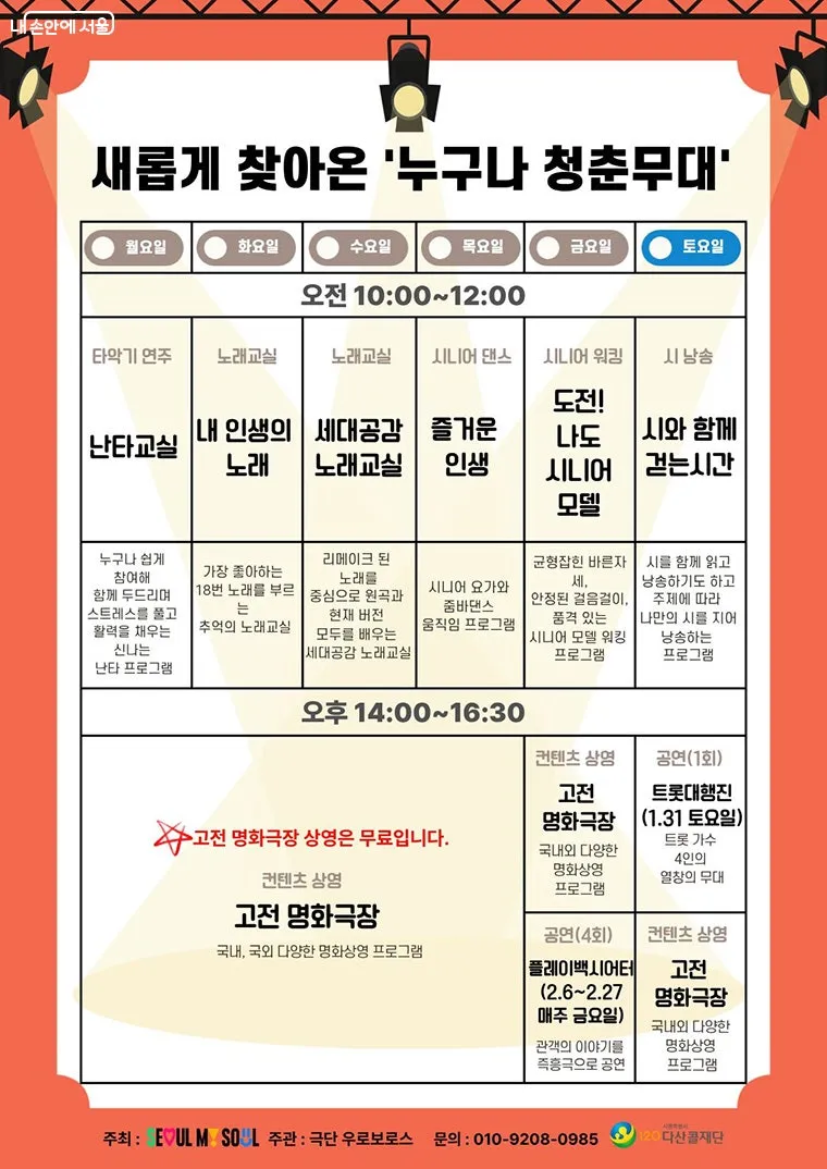 55세 이상 어르신 무료! 어르신 참여형 문화공간 '누구나 청춘무대' 시범 운영