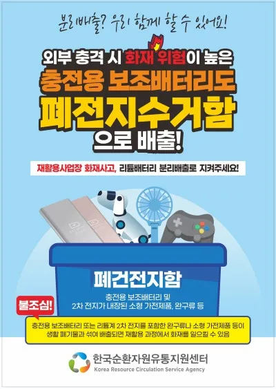 화재 예방을 위한 폐건전지(배터리) 분리배출 안내