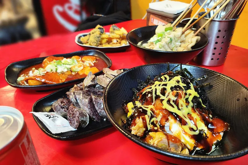 튀김은 바삭한 식감과 떡볶이 국물과의 조합이 환상적이고, 순대는 촉촉한 간이 배어 있어 떡볶이와 찰떡궁합입니다.