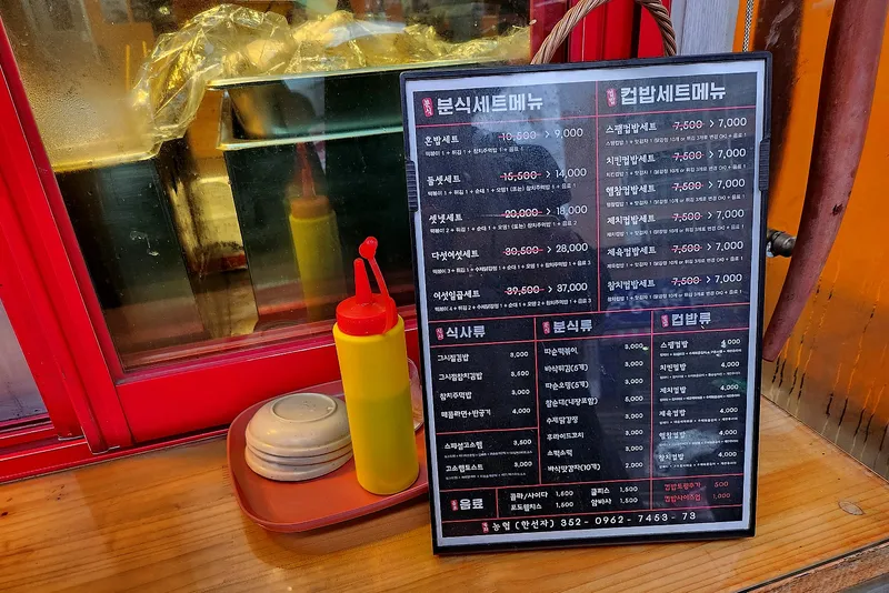 착한 가격업소답게 떡볶이, 어묵, 튀김, 닭강정, 소떡소떡 등 대부분 3,000원에 드실 수 있습니다. 컵밥 종류가 다양한데 모두 4,000원에 가능하고 세트메뉴를 통해 더 저렴하게 드실 수 있습니다.