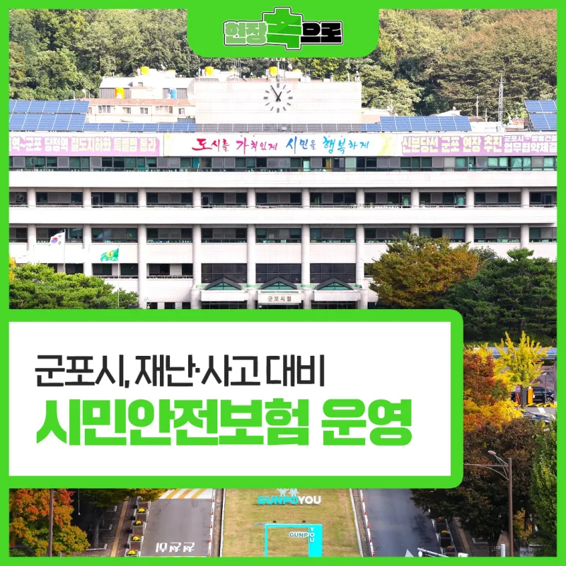 군포시는 일상생활에서 발생할 수 있는 사고·재난으로부터 피해를 입은 시민들의 생활 안정을 위해 시민안전보험 보장을 매년 갱신 시행하고 있다고 밝혔다.