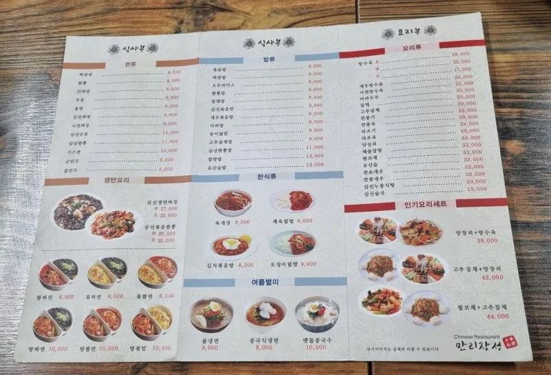가격은 A세트 25,000원, 짬뽕 8,000원,