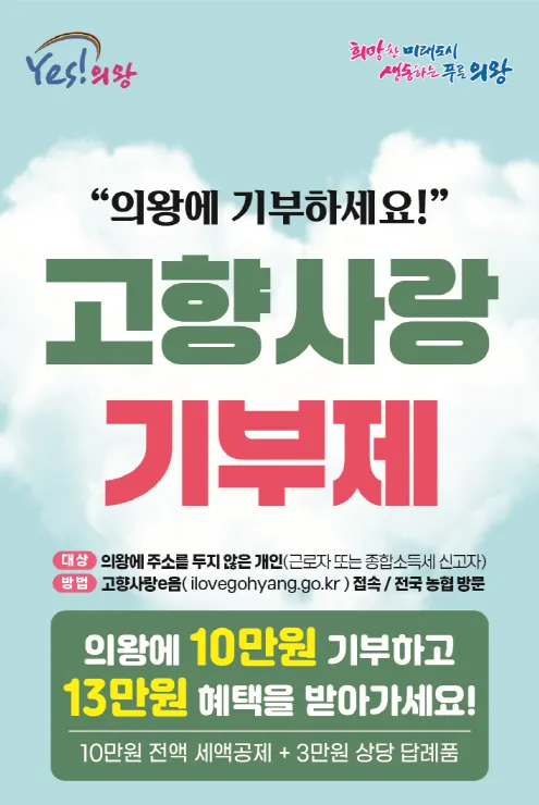 의왕시에 기부하고, 세액공제에 답례품까지 받자! 의왕시 고향사랑 기부제 알림