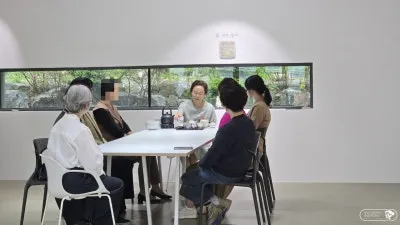 좋은 날씨에 전시장 곳곳에서 다양한 작품들을 볼 수 있는 시간이었다는 데에도 의미가 있었고, 두 작가의 서로 다른 추구미가 마음에 와닿는 느낌이 좋았습니다. 작가님과 함께하는 차회에 참여하면서 작품을 어떻게 구성하게 되었고 또 어떻게 진행하게 되었는지를 알게 되니 이전에 작품에서 느껴졌던 마음이나 생각이 차회를 통해서 달라지는 것이 느껴졌습니다. 함께 참여한 다른 분들도 그렇게 느꼈다고 하셨습니다.