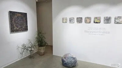 박성욱 작가는 오랜 시간 분청이라는 전통적 기법을 현대적으로 해석하며 비움과 여백의 미학을 구현해 왔고 이금영 작가는 도판 위에 반복과 흔적, 색의 층위를 쌓으며 기억의 흐름과 감정의 레이어를 시각화하는 작업을 지속해 왔다고 합니다. 뭔가 각각의 작품만 보면 마치 문과와 이와 같은 느낌으로 서로 다른 결인데도 뭔가 묘하게 편함을 주는 건 두 작가의 작품에 다 담겨있다 보니 좋은 시간으로 다가오는 전시였습니다.