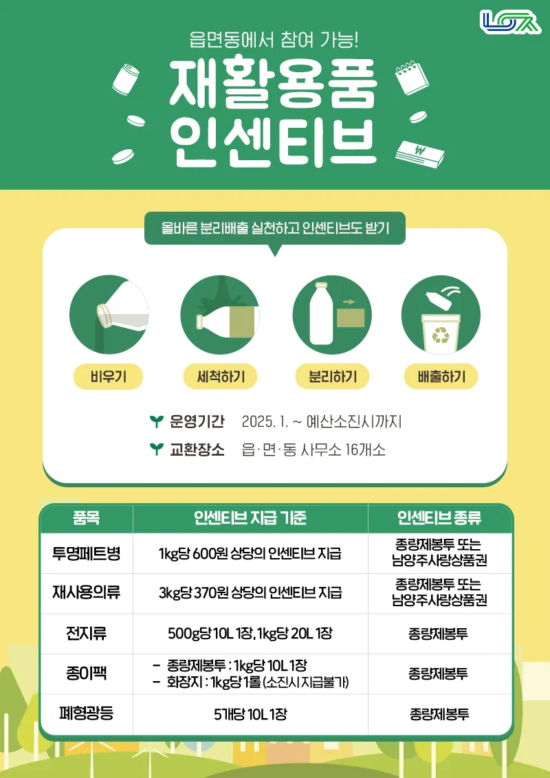 재활용품 인센티브 교환, 읍면동에서 참여하세요!!