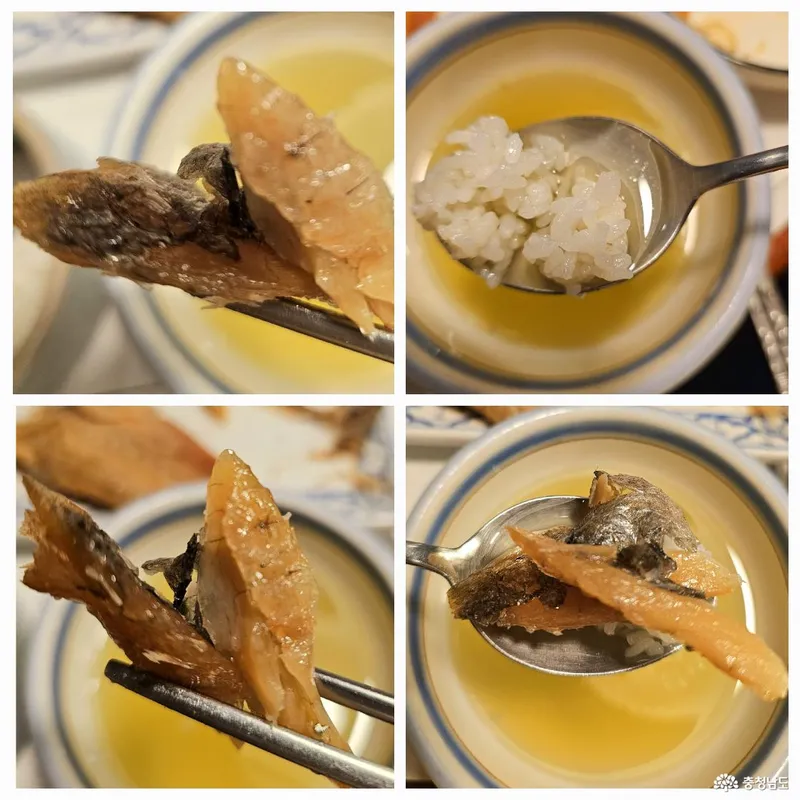 따뜻한 밥 한 술을 시원한 녹차 물에 살짝 담갔다가, 짭짤한 보리굴비 한 점을 올려 먹으니...🤤🤤🤤