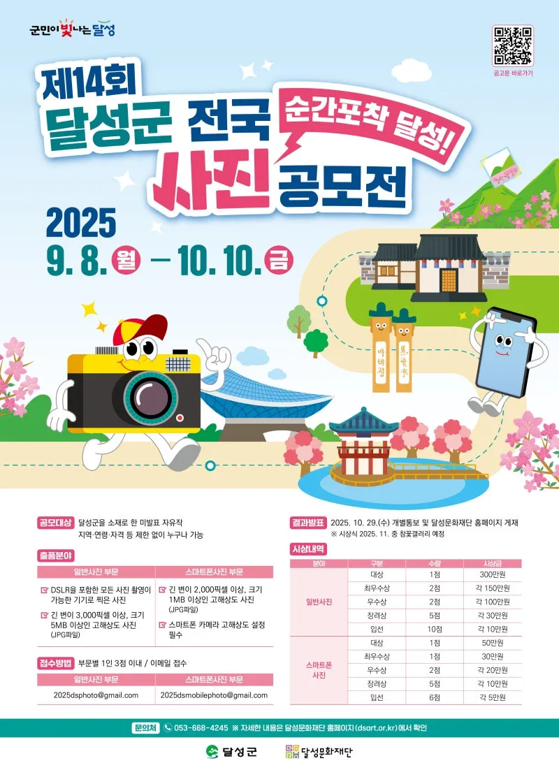 달성군에서 '순간포착 달성!'을 주제로 제14회 전국 사진공모전을 개최합니다📸