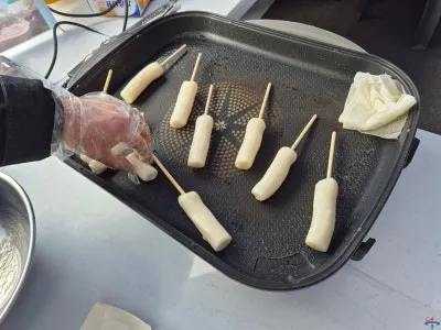 말랑말랑 가래떡을 프라이팬에 구워 마음에 드는 소스로 마무리할 수 있는 부스였는데요. 조청, 양념치킨 맛 소스 그리고 나머지 한 가지 맛은 기억이... 하지만 역시 가래떡에는 조청이 찰떡이었던 듯합니다. 달달하고 쫄깃쫄깃 그리고 식용유에 구워 고소함까지 겸비한 매력적인 가래떡 구이였습니다.