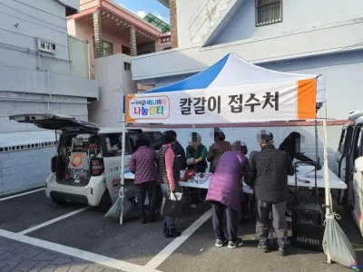 칼갈이 접수처와 대기장소에도 많은 주민들이 모여 있어서 깜짝 놀랐습니다.