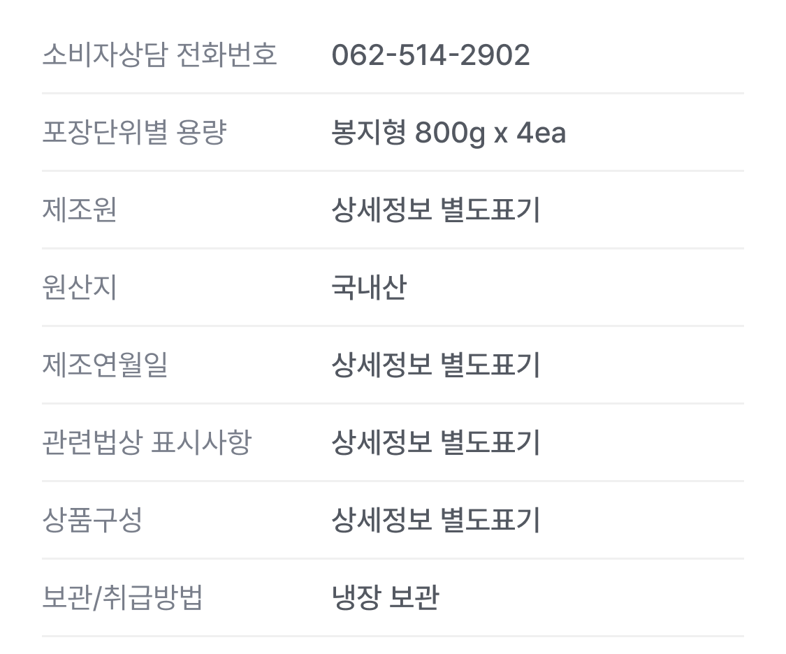 4종 모두 800g씩 총 3.2kg이 담겨있습니다.