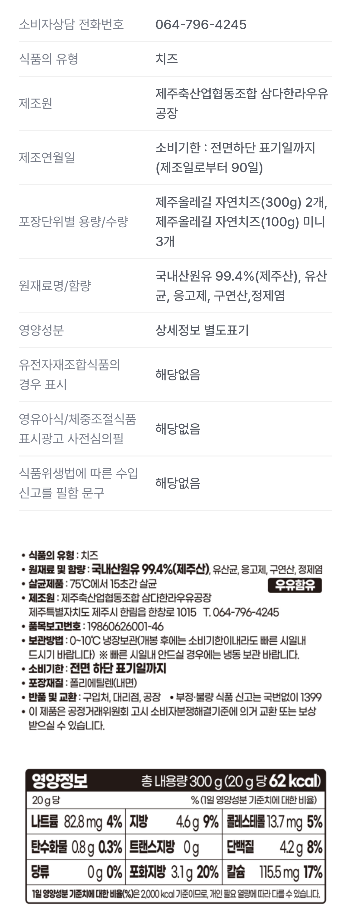 원유 100%로만 만든 무첨가 자연치즈입니다.