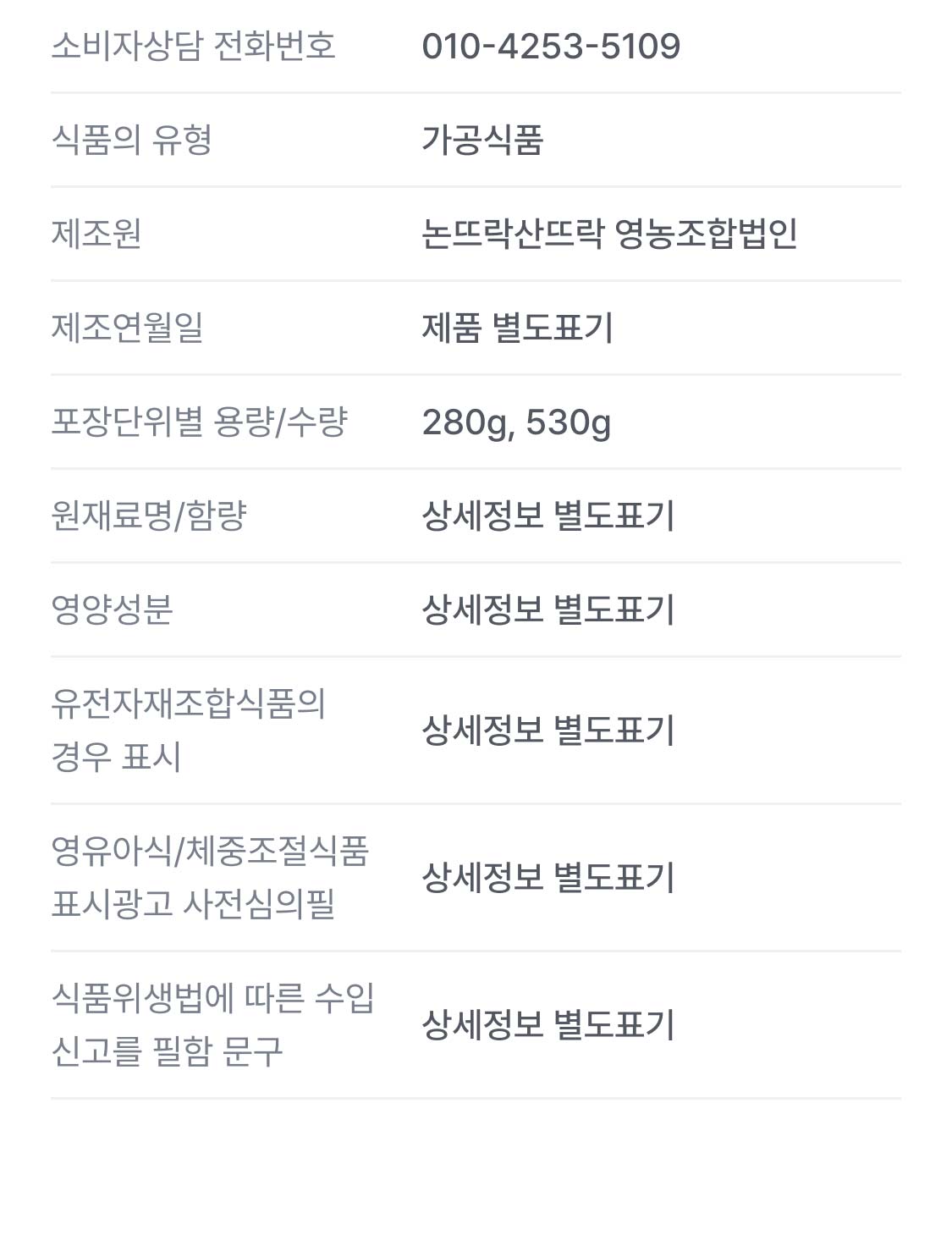 [프리미엄 딸기잼] 논뜨락산뜨락 딸기잼 (530g x 2병)