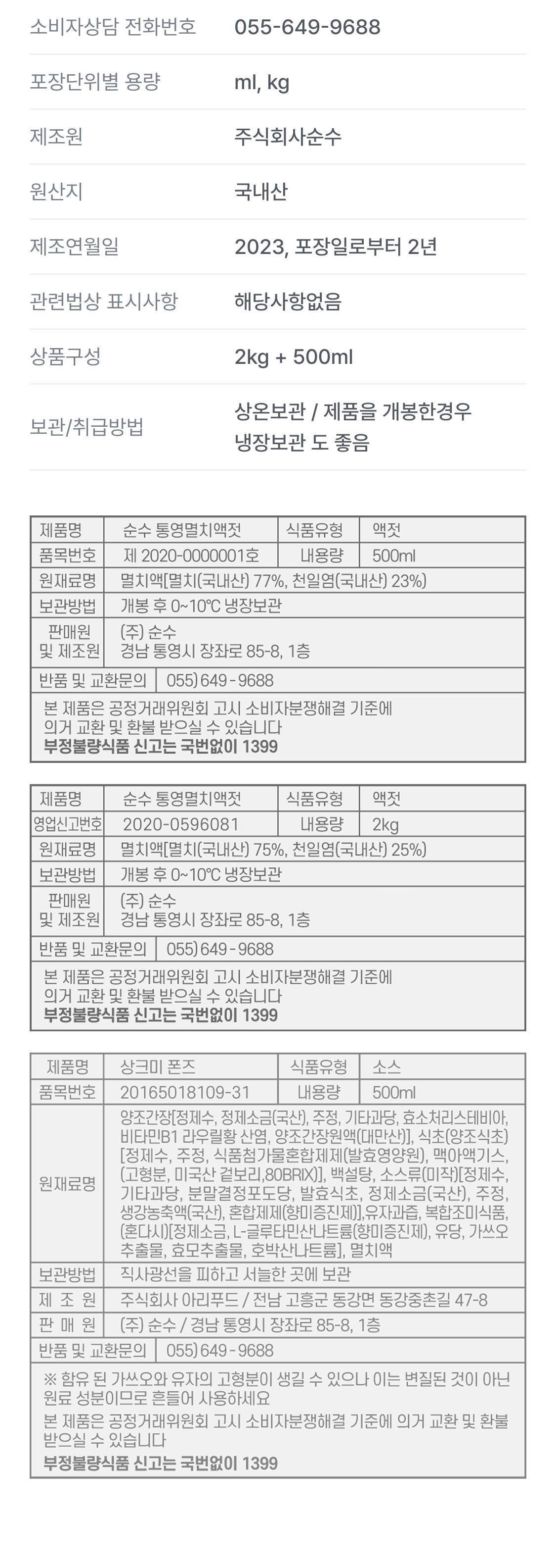 통영멸치액젓 2kg + 상크미(폰즈) 500ml