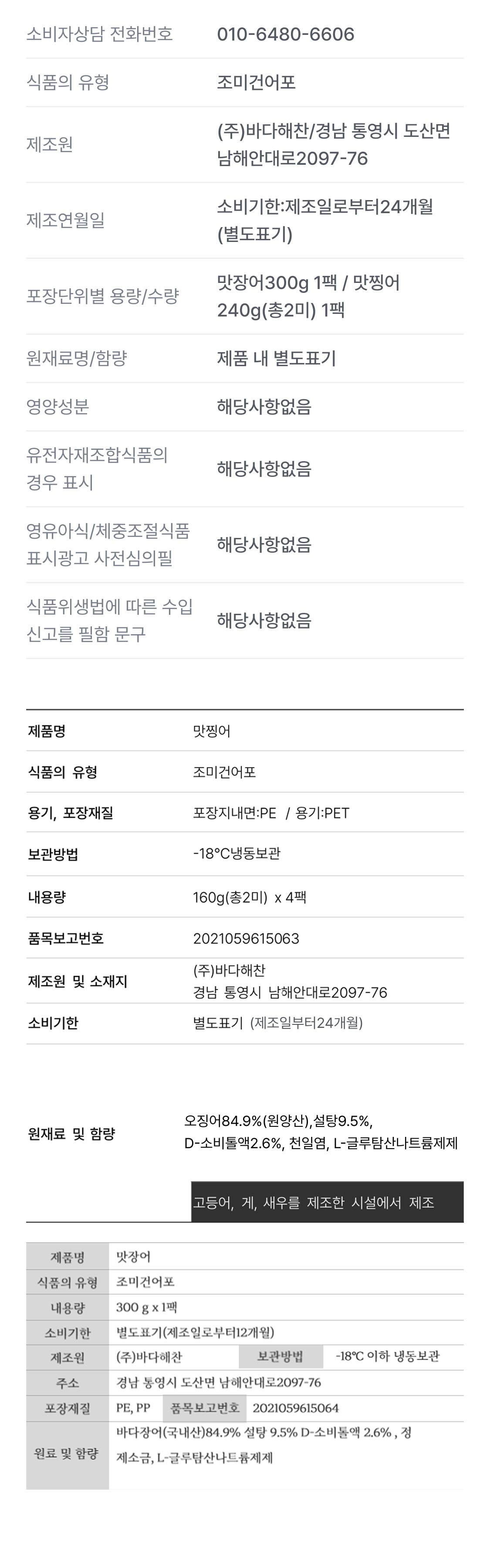 맛짱어(300g) 1팩 + 맛찡어 2미(240g) 1팩