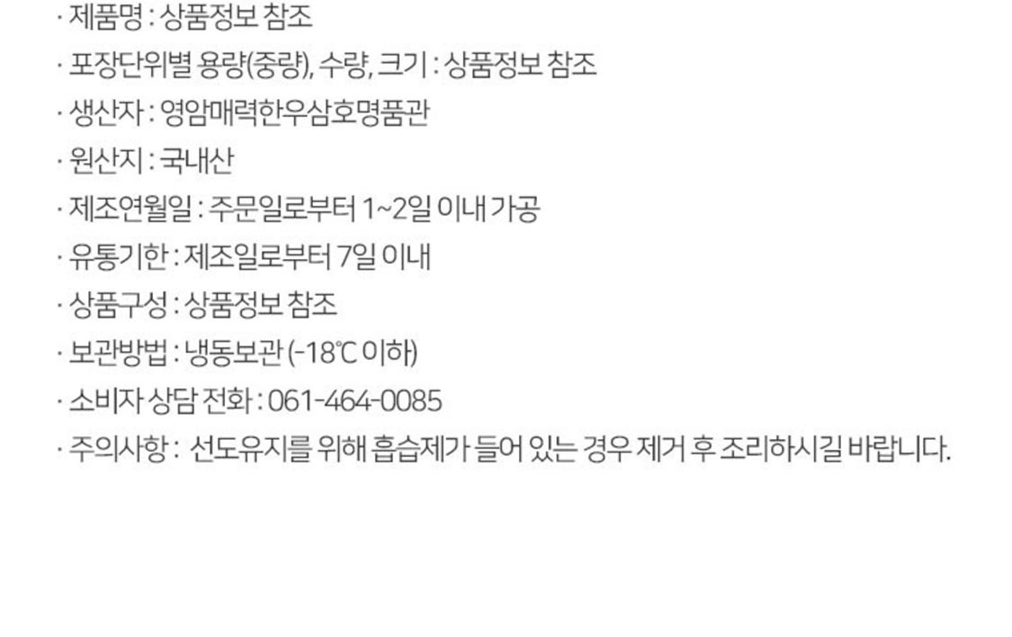 바로 조리하지 않을 때는 수령하는 즉시 냉동 보관하시고,