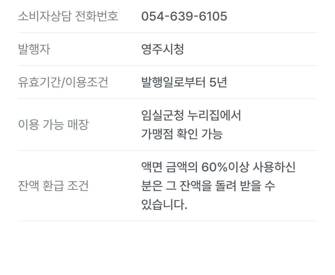본 상품권은 지역 상권과 전통시장 활성화를 위한 상품권으로 영주 지역에 등록된 소상공인 등이 운영하는 영주사랑 상품권 가맹점에서 사용할 수 있습니다.