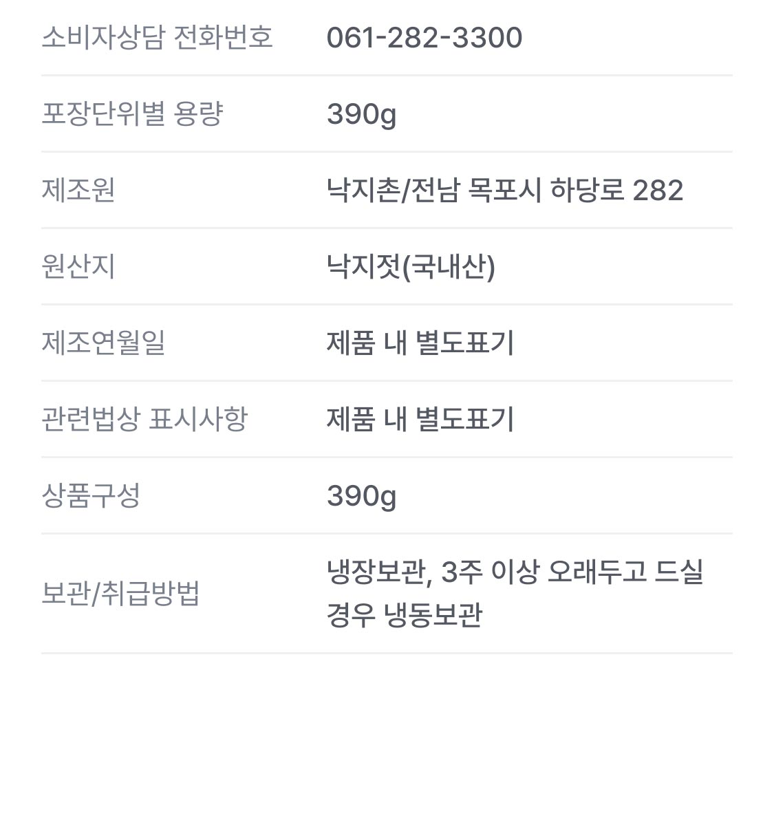 100% 국산 낙지젓갈(390g)