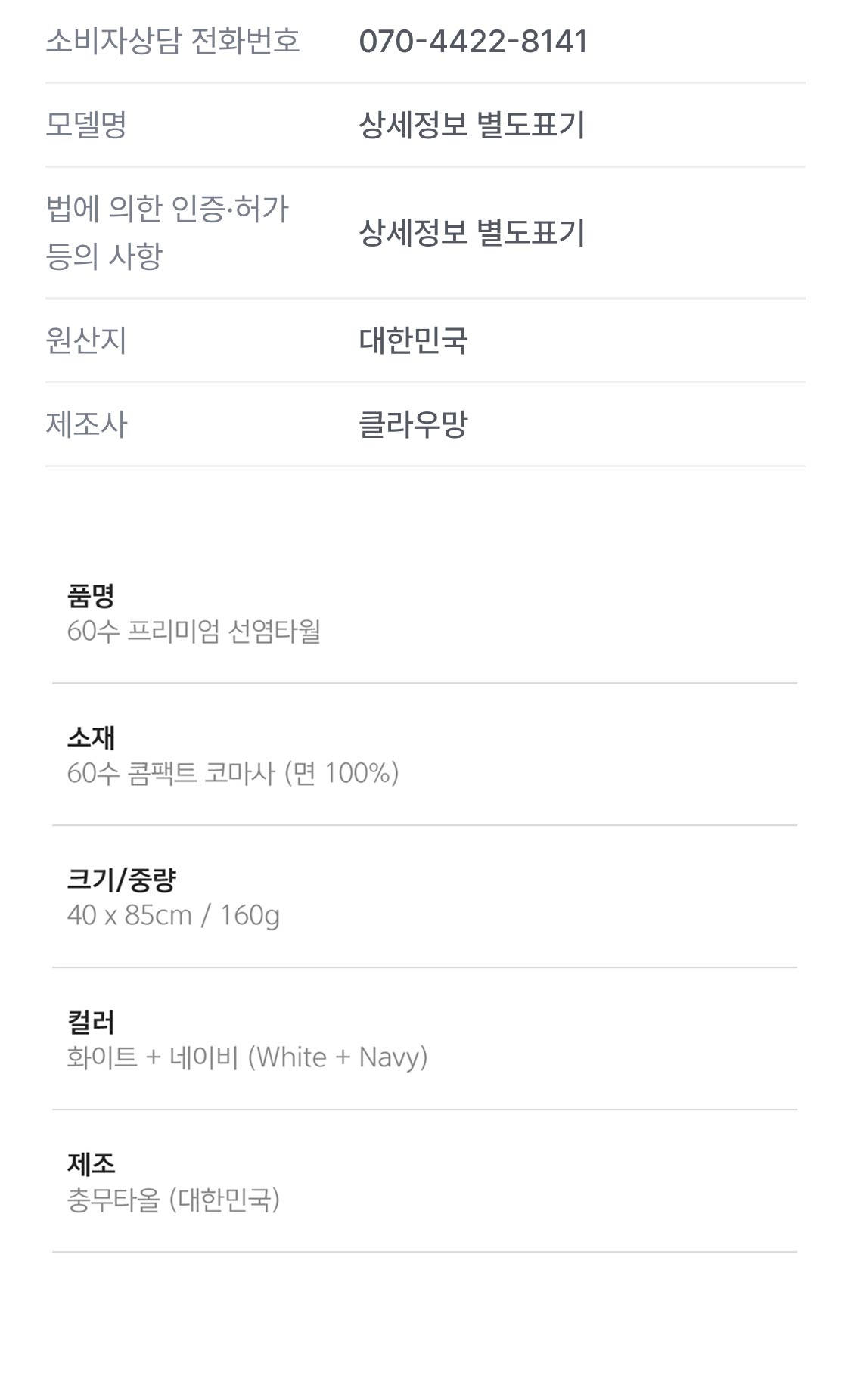 ‘수’는 타월의 두께가 아닌 실의 굵기를 의미합니다.