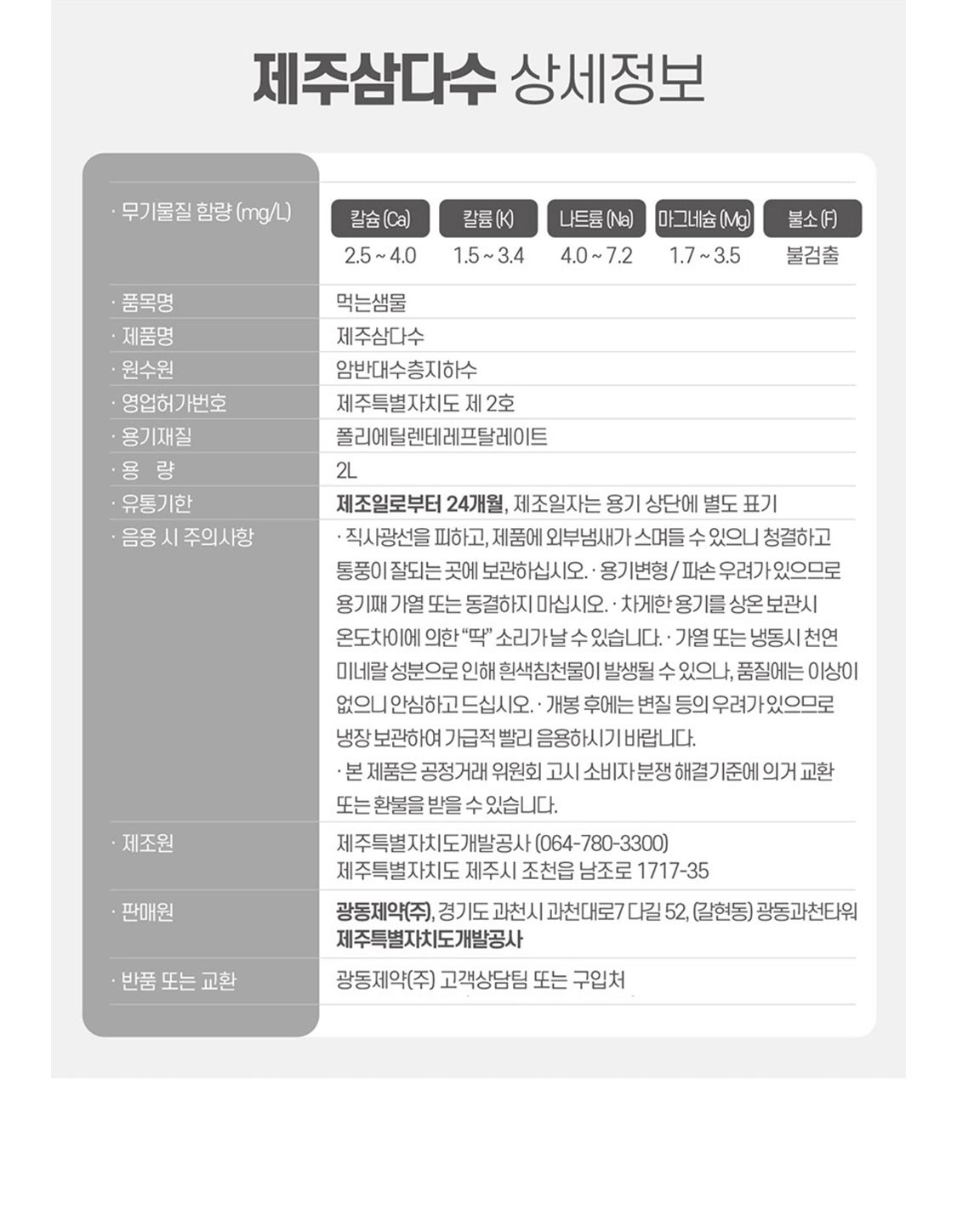 • 제주 삼다수의 소비기한은 24개월입니다.