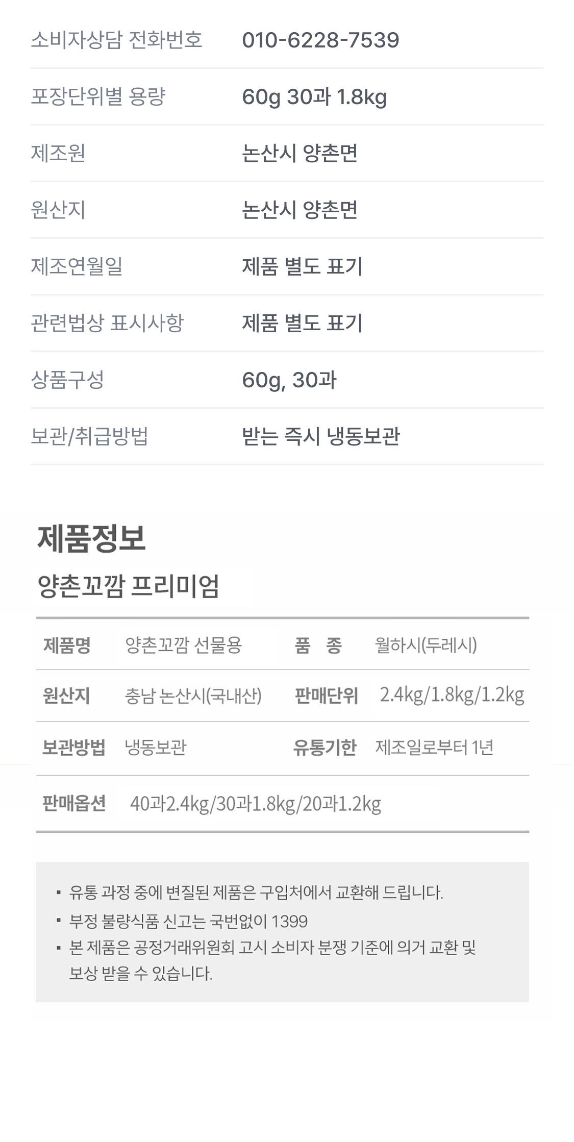 상품의 패키지는 농가 사정에 따라 변경될 수 있으며,